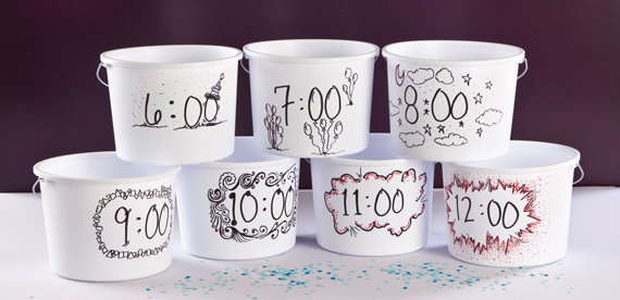 To make the night run smoothly incorporate a schedule into the festivities. A fun way to do this is by creating a scavenger hunt with the Sterilite 5 Quart Handy Pail. I chose to hide one pail around the house for every hour from 6:00 p.m. until midnight. The textured finish is perfect for decorating with sharpie markers which can be washed off with nail polish remover for future game ideas. The sturdy wire handle makes transporting the pail around the house easy for even the youngest child.